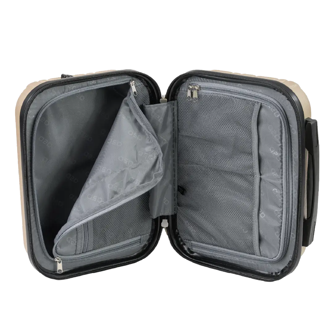 The fixed rear trolley strap slides securely over your Sojourn suitcase handle, keeping your set streamlined and easy to manoeuvre through terminals. Use it as a standalone cabin companion or pair it with your matching Sojourn case for a co-ordinated travel look.
