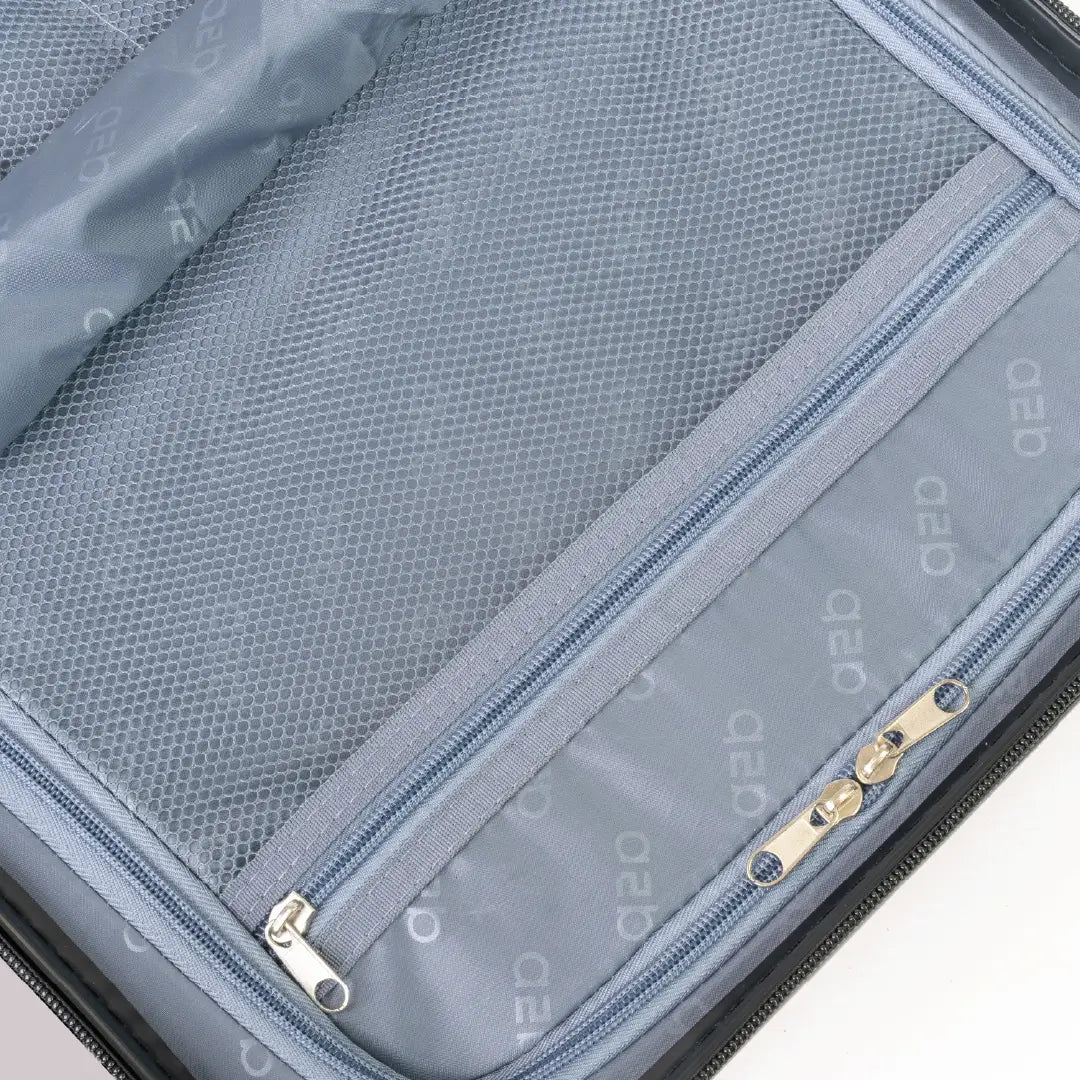 Strap Feature: Fixed rear trolley strap for suitcase attachment