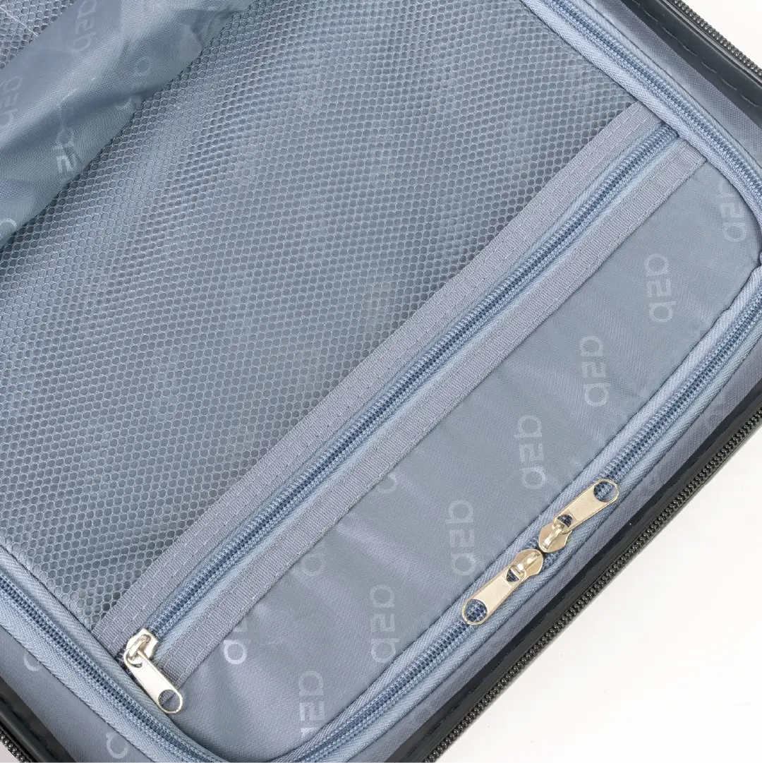 Strap Feature: Fixed rear trolley strap for suitcase attachment