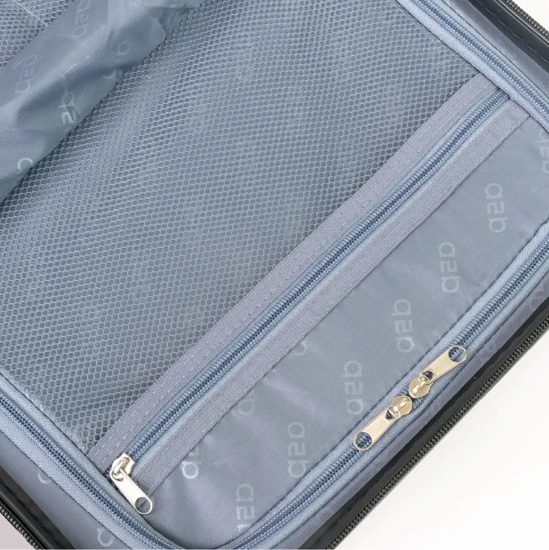 Strap Feature: Fixed rear trolley strap for suitcase attachment