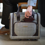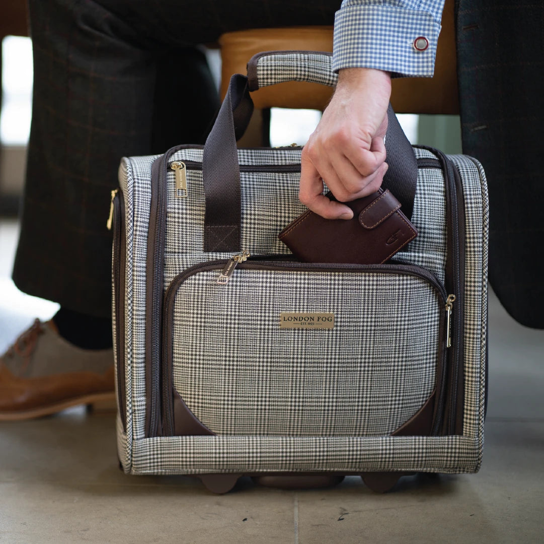 The London Fog Camberley range features a lightweight premium Prince of Wales plaid body material. Lightweight branded telescopic handle with locking push button. Padlock-compatible branded interlocking zip pullers. Ergonomic top carrying handles, fully branded interior lining with gold finish hardware. 2 Smooth glide spinner wheels for ease of transportation.