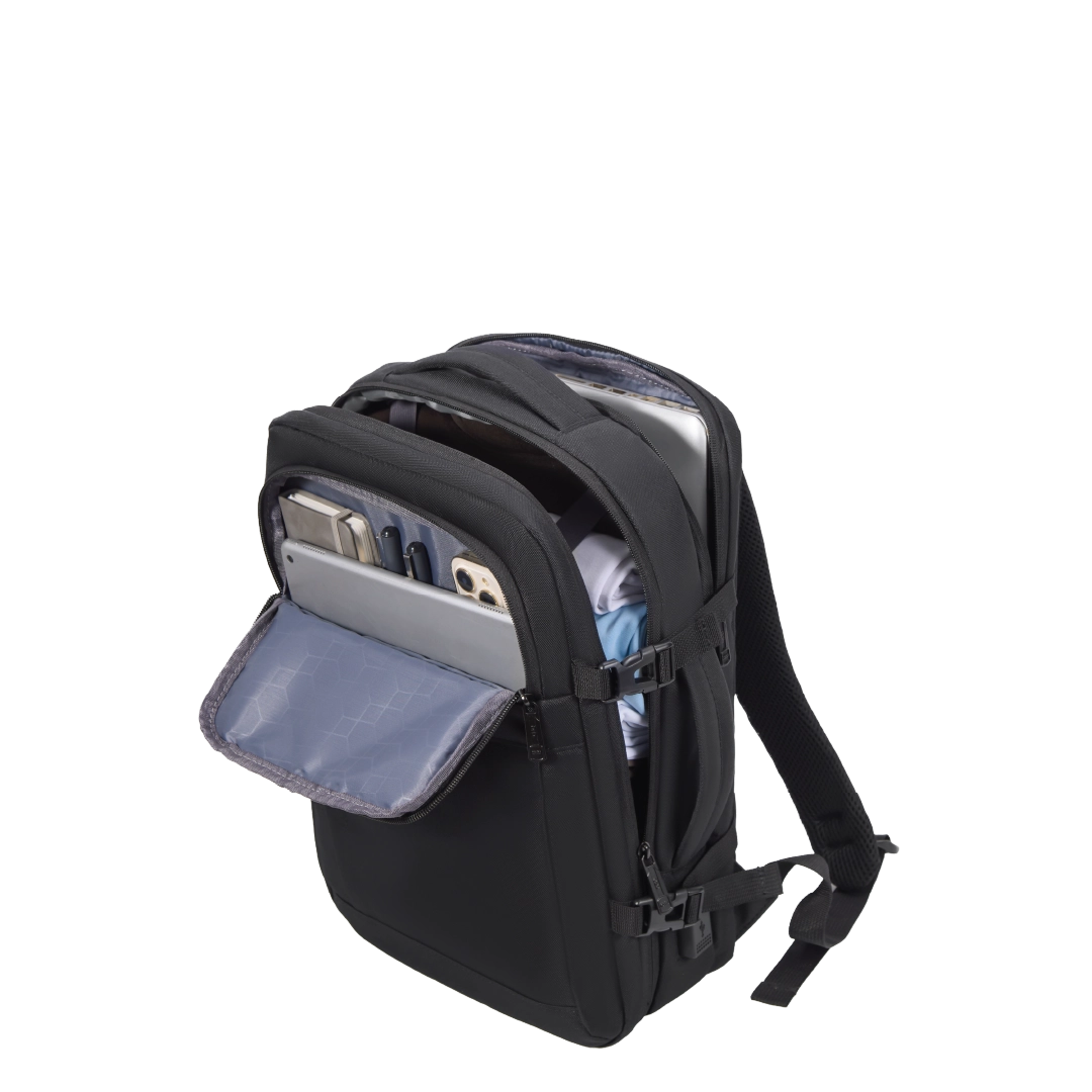 With a practical 20-litre capacity and dimensions of 40 x 20 x 25 cm, it slides neatly under the seat while still offering smart internal organisation. Clothing retention straps keep everything secure, multiple zipped sections separate essentials, and the padded laptop compartment fits up to 15” devices for easy access on the move.