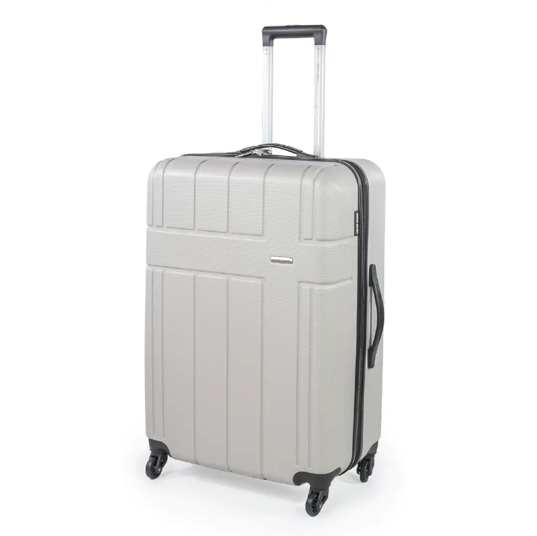 Crafted from premium lightweight ABS, Harlow balances strength with ease. It moves smoothly on four glide wheels and features a fully retractable trolley handle for seamless navigation through airports, stations and city streets. Inside, the fully lined interior with retention straps and organised compartments keeps everything secure and neatly in place.