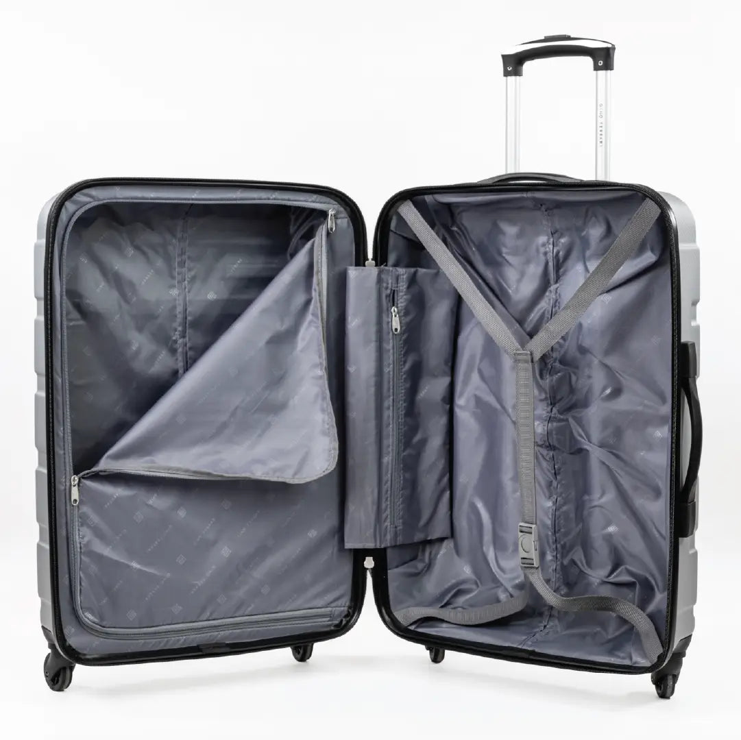 The exterior features a strong panelled design with horizontal ridging that adds texture and reinforcement while maintaining a sleek silhouette. It feels purposeful, cohesive and built to handle regular travel.